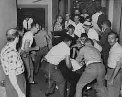 A gang of armed men also met the second Freedom Riders’ bus in Anniston, an hour after the first. This time the brutes boarded the bus to beat the Freedom Riders. That bus then went on to Birmingham, where an even worse Mother’s Day mob would meet them.