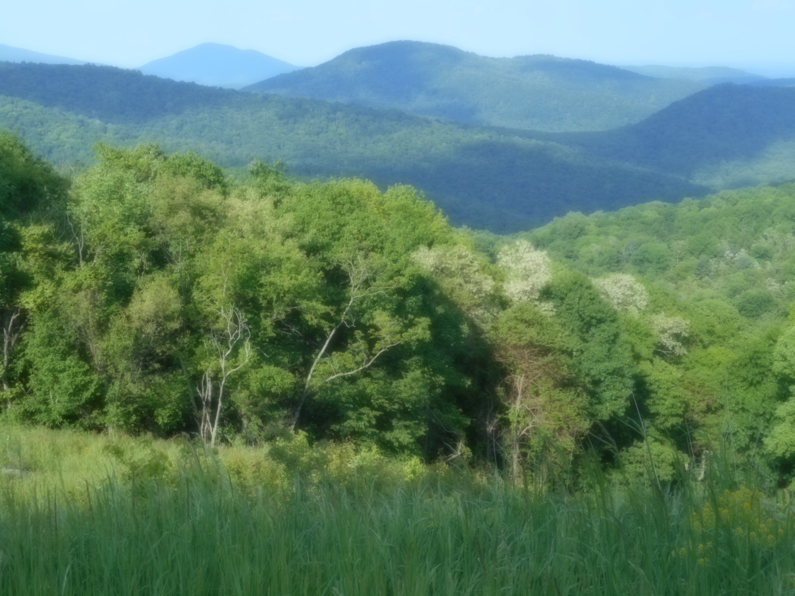 Our retreat from Appomattox, however, was glorious. Back roads took us north by northeast through more gorgeous rolling forest and farm country and finally along the thickly wooded east side of the Blue Ridge, a pretty evening of prime Virginia.